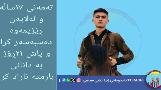 خۆڕاگری: کاوان سەبووری، مێرمنداڵی تەمەن ١٧ساڵانی خەڵكی کامێران پاش زیاتر لە ٢٠ڕۆژ ڕاگیران بەدانانی بارمتە و بەشێوەی کاتیی ئازاد کرا.