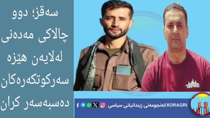 خۆڕاگری: دوو هاووڵاتیی خەڵكی سەقز بەناوەکانی سیروان خوداکەرەمی و محەممەد وەیسی، لەلایەن هێزە سەرکوتکەرەکانی ڕێژیمی ئێرانەوە دەسبەسەر کران.