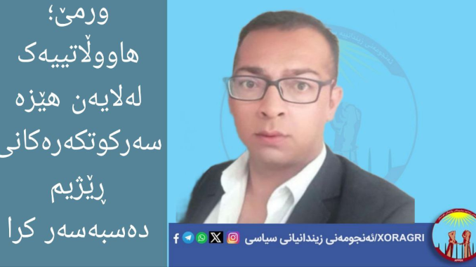 خۆڕاگری: فەرشاد سەوری، هاووڵاتیی خەڵكی ورمێ لەلایەن هێزە داگیرکەرەکانی ڕێژیمی ئێرانەوە دەسبەسەر کراوە.