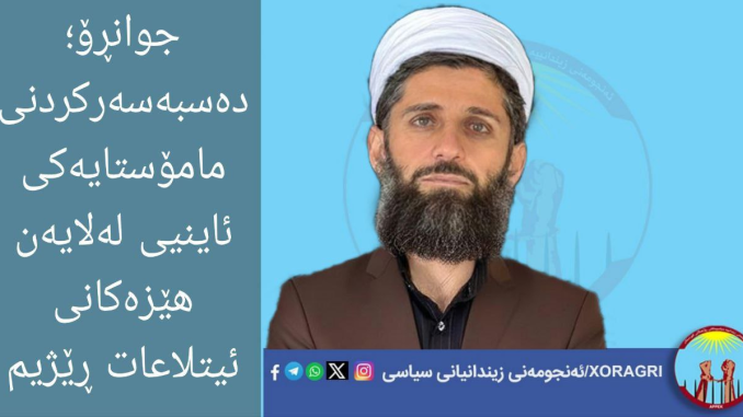 بەپێی هەواڵی ئەنجومەنی زیندانییە سیاسییەکانی ڕۆژهەڵاتی کوردستان “خۆڕاگری” ڕۆژی چوارشەممە، ٢٩ی خەزەڵوەری ١٤٠٤ی هەتاوی، ڕەفعەت سەعیدی، مامۆستای ئایینیی خەڵکی شاری جوانڕۆ لەلایەن هێزە سەرکوتکەرەکانی ئیدارەی ئیتلاعاتی ڕێژیمی ئیسلامیی ئێرانەوە بەبێ بوونی هیچ بەڵگەیەکی قەزایی و یاسایی دەسبەسەر کراوە و چارەنووسی نادیارە.