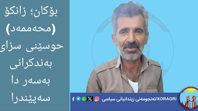 بەپێی هەواڵی ئەنجومەنی زیندانییە سیاسییەکانی ڕۆژهەڵاتی کوردستان “خۆڕاگری” ڕۆژی شەممە، ١ی سەرماوەزی ١٤٠٤ی هەتاوی، سەید محەممەد (زانکۆ) حوسێنی، هاووڵاتیی خەڵكی گوندی “ئاڵیکەند”ـی سەربە شاری بۆکان لەلایەن دادگای پێداچوونەی ئینقلابی ئیسلامیی ڕێژیمی ئێرانەوە لە ورمێ بەتۆمەتی هاوکاری لەگەڵ یەکێک لە حیزبە کوردستانییەکانی دژبەری ڕێژیمی ئیسلامیی ئێران، سزای ١ساڵ بەندکردنی تەعزیریی بەسەردا سەپێندراوە.