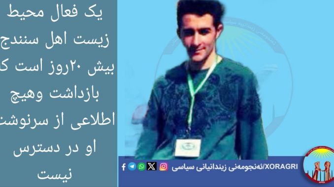 بنا بر گزارش اتاق خبر انجمن زندانیان سیاسی شرق کردستان و سایت خوراگری؛ بیش از بیست روز از بازداشت پویا حبیبی، فعال محیط زیست اهل سنندج، توسط نیروهای سرکوبگر رژیم میگذرد و تاکنون هیچ اطلاعاتی از سرنوشت و محل نگهداری وی در دست نیست.