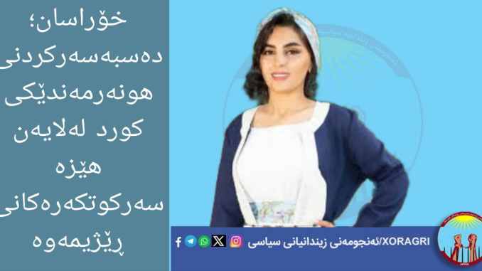 خۆڕاگری: ئەسمەر حەمیدی، هونەرمەند و چالاکی مەدەنیی خەڵکی خۆراسان لەلایەن هێزە سەرکوتکەرەکانی ڕێژیمی ئێرانەوە دەسبەسەر کراوە و گوازراوەتەوە بۆ شوێنێکی نادیار.