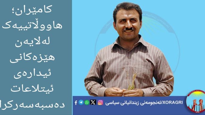 خۆڕاگری: ڕەزا مورادی هاووڵاتی خەڵکی کامێران لەلایەن هێزە سەرکوتکەرەکانی ئیتلاعاتی ڕێژیمەوە دەسبەسەر کرا.