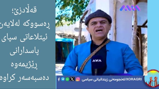 خۆڕاگری: عومەر ئەحمەد، ناسراو بە ڕەسووکە، پێشکەشکاری تەلەڤیزیۆنی ئاڤا میدیا و هاووڵاتیی خەڵکی قەڵادزێ، لەلایەن ئیدارەی ئیتلاعاتی سپای تێرۆریستی پاسدارانی ڕێژیمی ئێرانەوە دەسبەسەر کراوە.