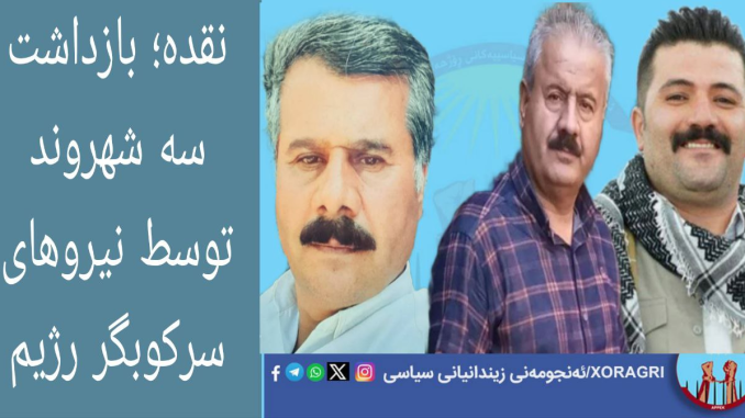 خۆڕاگری: هیمن رحیمی، احمد و محمود خدادادی، سه شهروند اهل نقده توسط نیروهای سرکوبگر رژیم ایران بازداشت شدهاند.