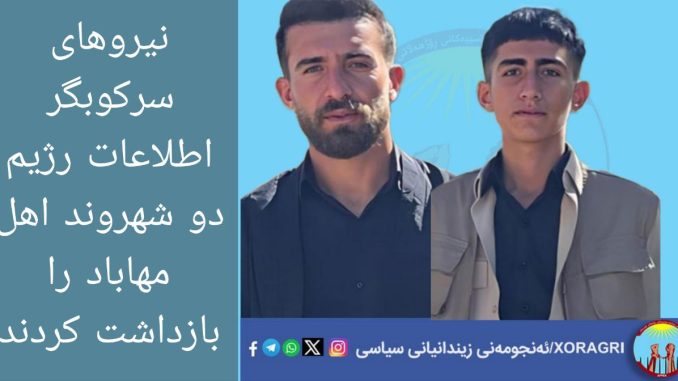 خۆڕگری: ایمان محمدزاده و هژار محمدزاده اقدم، دو شهروند اهل مهاباد، توسط نیروهای سرکوبگراطلاعات سپاە پاسداران رژیم ایران دستگیر و به مکان نامعلومی منتقل شدهاند.