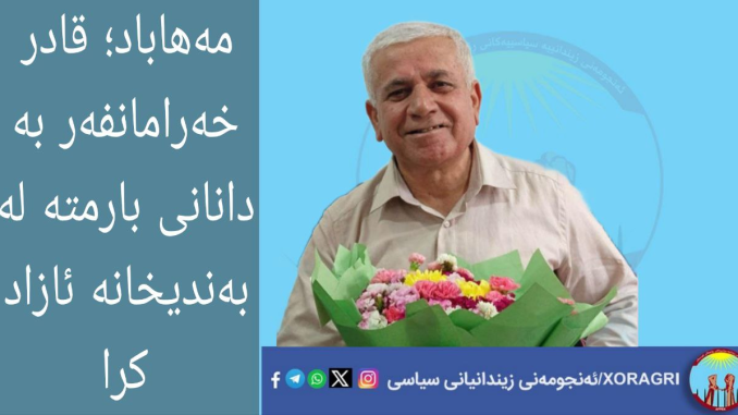 خۆڕاگری: قادر خەرامانفەر، چالاکوانی سیاسیی دەسبەسەرکراوی خەڵكی مەهاباد پاش یەکساڵ ڕاگیران، بەدانانی بارمتە و بەشێوەی کاتی ئازاد کراوە.