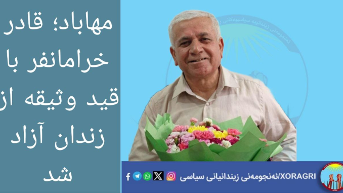 خۆڕاگری: قادر خرامانفر، فعال سیاسی اهل مهاباد، که از آذر ماه سال گذشته در بازداشت بهسر میبرد، با قرار وثیقه به صورت موقت از زندان مهاباد آزاد شد.