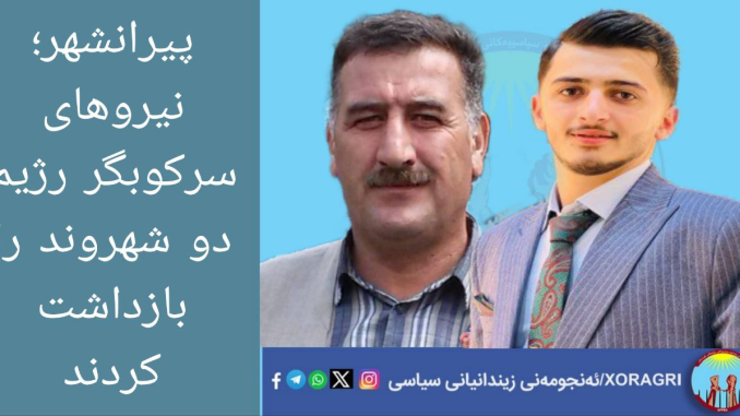 خۆڕاگری: طاهر باپیران و سیامند اسماعیلی، دو شهروند اهل اشنویه توسط نیروهای سرکوبگر رژیم ایران بازداشت و به مکانی نامعلوم منتقل شدند.