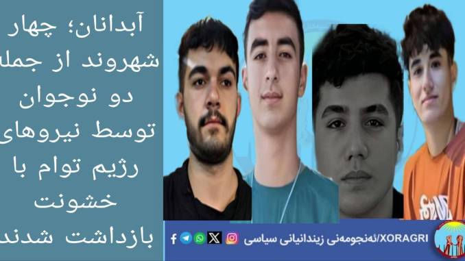 بر اساس گزارش وبسایت خبری انجمن زندانیان سیاسی شرق کردستان (خۆڕاگری)، روز دوشنبه ۲۴ آذر ۱۴۰۴ (۱۵ دسامبر ۲۰۲۵)، امیرعلی حیدری، حسین حاجیان، و همچنین دو نوجوان به نامهای ایلما ایمانی ۱۷ ساله و سهیل پارکرزان ۱۷ ساله، شهروندان اهل شهر آبدانان، بدون وجود هیچگونه حکم قانونی و قضایی و به شیوهای خشونتآمیز توسط نیروهای اطلاعاتی رژیم بازداشت و به مکانی نامعلوم منتقل شدند.