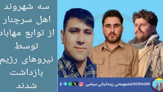 خۆڕاگری: حسن رمضانی، بهمن احمدزاده و سالار استاداحمدی، سه شهروند اهل مهاباد توسط نیروهای سرکوبگر رژیم بازداشت شدهاند.