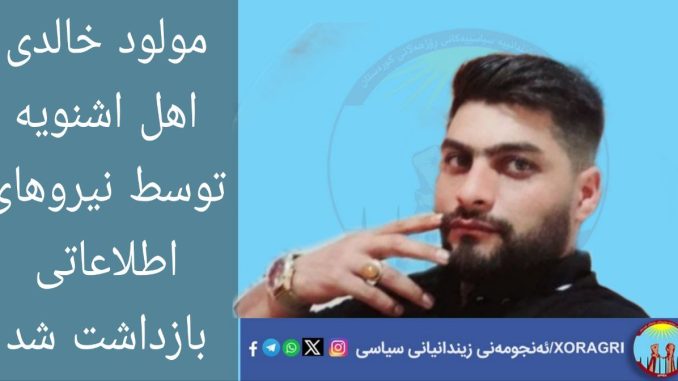 خوراکری: مولود خالیدی، شهروند اهل شهر اشنویه توسط نیروهای سرکوبگر رژیم ایران بازداشت و به مکان نامعلومی منتقل شد.