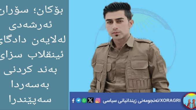 خۆڕاگری: سۆران ئەرشەدی، هاووڵاتیی خەڵكی بۆکان لەلایەن دەزگای قەزایی ڕێژیمی ئێرانەوە سزای ٢ساڵ و زیاتر لە ٧مانگ بەندکردنی بەسەردا سەپێندراوە.