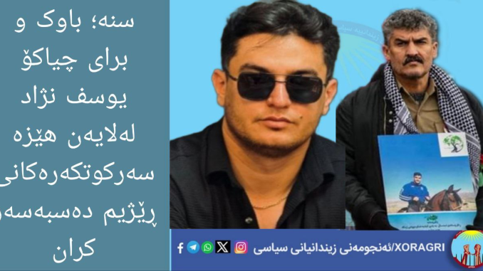 بەپێی هەواڵی ئەنجومەنی زیندانییە سیاسییەکانی ڕۆژهەڵاتی کوردستان “خۆڕاگری” ڕۆژی دووشەممە، ١ی بەفرانباری ١٤٠٤ی هەتاوی “٢٢ی دێسامبری ٢٠٢٥ی زایینی” عادڵ یوسفنژاد و ئاکۆ یوسفنژادی کوڕی و هاووڵاتیی خەڵكی شاری سنە هەروەها باوک و برای چیاکۆ، چالاکوانی ژیگەپارێزی کە بەهۆی کوژانەوەی ئاگری دارستانەکانی ئاویەری سنە گیانە لەدەستدا، لەلایەن ئیدارەی ئیتلاعاتی سپای تێرۆریستی پاسدارانی ڕێژیمی ئێرانەوە بانگ کران و هەرلەوێ دەسبەجێ دەسبەسەر کراون.
