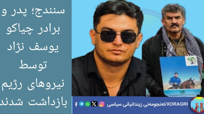 خۆڕاگری: عادل و آکو یوسفنژاد، پدر و پسر اهل سنندج، توسط نیروهای سرکوبگر اطلاعات رژیم ایران بدون هیچگونه حکم قضایی و قانونی بازداشت شدهاند.