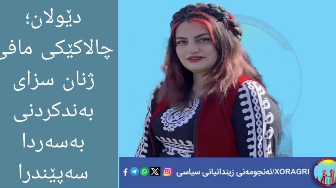 بەپێی هەواڵی ئەنجومەنی زیندانییە سیاسییەکانی ڕۆژهەڵاتی کوردستان “خۆڕاگری” ڕۆژی شەممە ٢٩ی سەرماوەزی ١٤٠٤ی هەتاوی “١٩ی دێسامبری ٢٠٢٥ی زایینی”، سوهەیلا مەتاعی،چالاکی بواری مافەکانی ژنان، لە دۆسییەکی پێوەندیدار بە ڕۆژی جیهاین ژنان واتە ٨ی مارس لەلایەن دادگای تاوانەکانی شاری دێولان سزای ٣ ساڵ بەندکردنی هەڵپەسێردراو و ٦مامگ بەندکردنی تەعزیری بەسەردا سەپێندراوە.