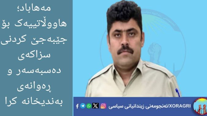 بەپێی هەواڵی ئەنجومەنی زیندانییە سیاسییەکانی ڕۆژهەڵاتی کوردستان “خۆڕاگری” ڕۆژی چوارشەممە ٣ی بەفرانباری١٤٠٤ی هەتاوی “٢٤ی دێسامبری ٢٠٢٥ی زایینی”، کەیوان مامەگوڵی، هاووڵاتیی خەڵکی گوندی گوێکتەپەی سەربە شاری مەهاباد کە پێشتر بە تۆمەتی پروپاگەندە بەدژی کۆماری ئیسلامی لەلایەن دادگای ئینقلاب سزای ٦ مان بەندکردنی بەسەردا سەپێندرابووبە مەبەستی جێبەجێ کردنی سزاکەی دەسبەسەرو ڕەوانەی بەندیخانە کرا.