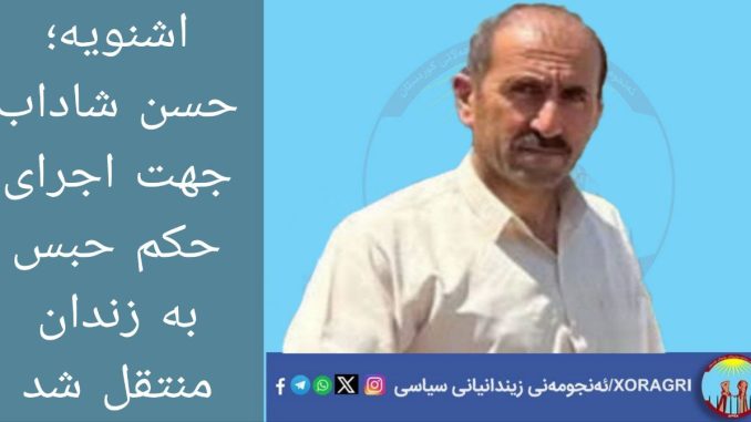خوراگری: حسن شاداب، شهروند اهل روستای «بابخالاوی» از توابع شهر اشنویه که پیشتر به اتهام همکاری با احزاب کُرد به حبس محکوم شده بود، به زندان منتقل شد.