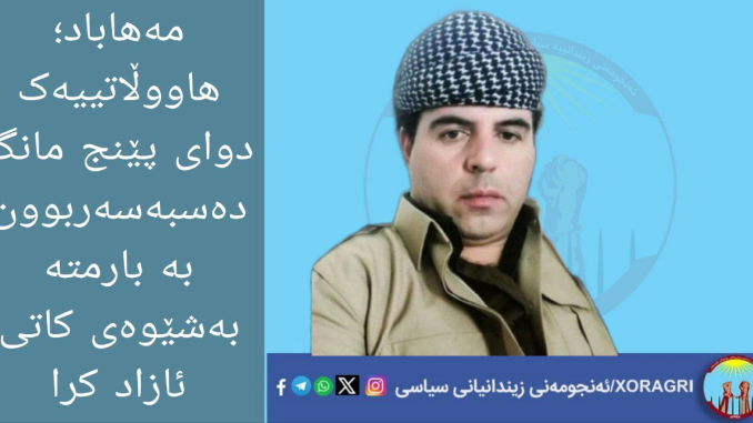 خۆڕاگری: کەبیر گوڵابی، هاووڵاتیی دەسبەسەرکراوی خەڵکی مەهاباد پاش پێج مانگ ڕاگیران بە دانانی بارمتەی قورس و بەشێوەی کاتی ئازاد کراوە.