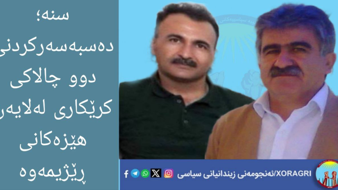 بەپێی هەواڵی ماڵپەڕی ئەنجومەنی زیندانییە سیاسییەکانی ڕۆژهەڵاتی کوردستان “خۆڕاگری” ڕۆژی شەممە، ٦ی بەفرانباری ١٤٠٤ی هەتاوی “٢٧ی دێسامبری ٢٠٢٥ی زایینی”، عەبدوڵڵا خانی و ئیدرسی خوداکەرەمی، دوو چالاکوانی کرێکاریی خەڵكی شاری سنە، لەلایەن هێزە سەرکوتکەرەکانی ئیدارەی ئیتلاعاتی ڕێژیمی ئێرانەوە بەبێ بوونی هیچ بەڵگەیەکی قەزایی و یاسایی دەسبەسەر کراون گوازراونەتەوە بۆ گرتنگەیەکی ئەو ناوەندە سەرکوتکەرەکانی لە سنە چارەنووسیان ناڕوونە.