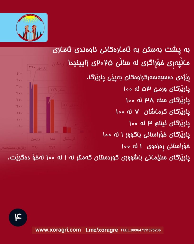 پارێزگای ورمێ ٥٣ لە ١٠٠، پارێزگای سنە ٣٨ لە ١٠٠، پارێزگای کرماشان ٧ لە ١٠٠، پارێزگای ئیلام ٣ لە ١٠٠ی دەسبەسەرکراوەکانی رۆژهەڵاتی کوردستان و هەریەک لە پارێزگاکانی خۆراسانی باکوور لە پارێزگای خۆراسانی ڕەزەوی هەرکام ١ لە ١٠٠ی دەسبەسەرکراوەکانی دەرەوەی ڕۆژهەڵاتی کوردستان و پارێزگای سلێمانی باشووری کوردستان کەمتر لە ١ لە ١٠٠ لەخۆ دەگرێت.