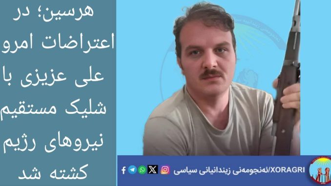 بنا بر گزارش انجمن زندانیان سیاسی شرق کردستان «خوراگری»، روز جمعه ۱۲ دی ۱۴۰۴ شمسی «۲ ژانویه ۲۰۲۶ میلادی»، علی عزیزی، شهروند اهل هرسین از توابع استان کرمانشاه، در جریان اعتراضات امروز این شهر که چند روز است ادامه دارد، توسط نیروهای سرکوبگر جمهوری اسلامی هدف تیراندازی قرار گرفت و جان خود را از دست داد.