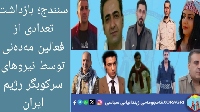 خۆڕاگری: در ادامه موج بازداشتهای رژیم در کردستان، ده شهروند اهل سنندج به نامهای «بیان فرجاللهی، خالد سیفپناهی، آرمان سلیمی، قانع خاطری، دلیر اسکندری، جمال خدارحمی، کیوان زندکریمی، شاهو محمدی، خبات اسدی و وریا معید»، توسط رژیم ایران بازداشت شدهاند.
