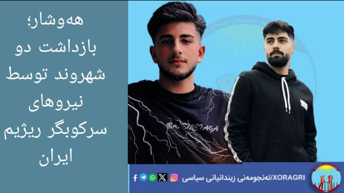 خوڕاگری: دو شهروند اهل منطقه هەوشار به نامهای آرمین رحیمی و سینا مرادی، توسط نیروهای سرکوبگر رژیم ایران بازداشت شدهاند.