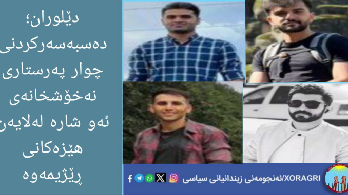 خۆڕاگری: چوار پەرستاری خەڵکی دێلوڕان بەناوەکانی حوسێن کەرەمی، ئەحمەد خوسرەوی، محەممەد مورادیتەریقی و ئێحسان ئەحمەدی، لەلایەن هێزە سەرکوتکەرەکانی ڕێژیمەوە دەسبەسەر کراون.