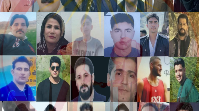 سەعید شەهگوڵی، محەممەدڕەزا عەوەزپوور، مەسعوود مرادی، مەهدی زارعی، ئەبولفەزل جاهیدی، ئەشکان بەستار، ئەحمەد خوسرەوانی، عابدین خەزایی، ئەمیرحوسێن فەتحی (خوێندکاری ئەندازیاری) و موحسین باوەندپوور، ئەو هاووڵاتییە کوردانەن کە لە ناڕەزایەتییەکانی تاران و کەرەجدا بەر گولـلەی جەنگی هێزە سەرکوتکەرەکانی ڕێژیم کەوتوون و گیانیان لەدەست داوە.