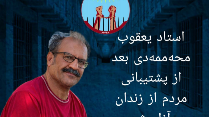 بنا بر گزارش وبسایت خبری انجمن زندانیان سیاسی شرق کوردستان «خۆڕاگری»، صبح روز یکشنبه ۳ اسفندماه ۱۴۰۴ خورشیدی (۲۲ فوریه ۲۰۲۶ میلادی)، «یعقوب محمدی»، شخصیت فرهنگی و خوشنام اهل شهر آبدانان، تحت فشارهای مردمی و پس از پایان مهلت تعیینشده از سوی افکار عمومی برای آزادیاش، از بازداشتگاه رژیم آزاد شد و مورد استقبال گسترده مردم با شعار «یعقوب دوستت داریم» قرار گرفت.